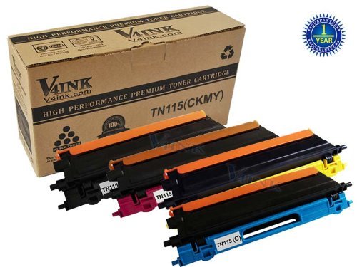 4 Pack V4INK ® New Compatible with Brother TN115 TN110 toner TN-115 TN-110 (1 Black, 1 Cyan, 1 Yellow, 1 Magenta) High Yield Toner cartridge for Brother HL-4040,4050,4070,DCP-9040,9045,MFC-9440,9640CW,9840